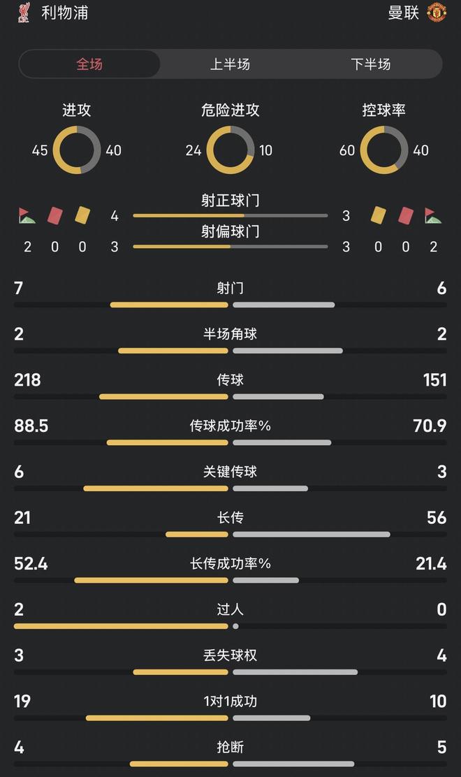 双红会半场数据对比